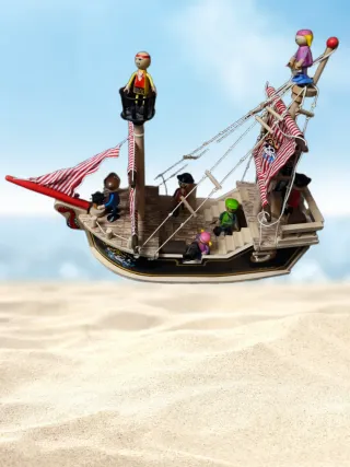 Divertido barco pirata de juguete. - Diseño colorido con detalles. - Incluye accesorios. - Ideal para juegos de imaginación.