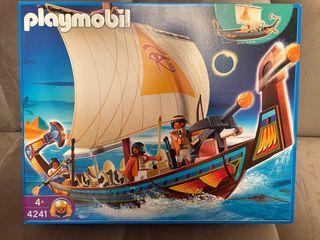Barco egipcio de Playmobil, modelo 4241. Ideal para coleccionistas y amantes de la historia. - Incluye figuras y accesorios. - Diseño inspirado en el antiguo Egipto. - Dimensiones aproximadas del barco: 40 cm. En su caja original sin abrir.