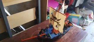 Dos Sets de Playmobil que incluye un barco pirata y una isla con tesoro. Ideal para recrear aventuras en alta mar. - Barco pirata con velas rojas y detalles. - Isla con cofre del tesoro y monedas. - Figuras de piratas y esqueletos. - Accesorios como cañones, espadas y remos. Precio original 110€ (70€ y 40€)