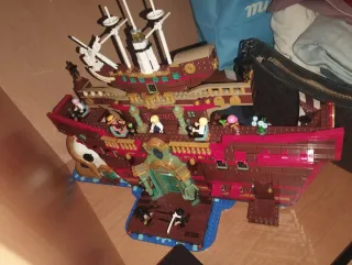 Set de construcción Lego 75640, inspirado en el Baratie de One Piece. No tiene caja ni instrucciones. - Piezas para construir el barco restaurante. - Incluye 10 figuras de personajes y 5 carteles Solo hago envíos, previo pago en cuenta. Transferencia o bizum