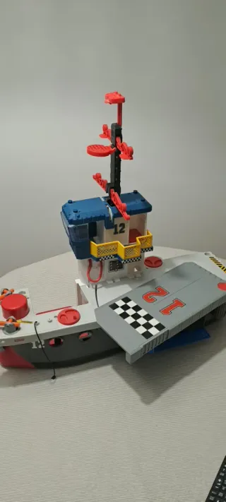 Barco de juguete de la marca Lego, modelo 1 2 3. Ideal para horas de diversión. - Diseño colorido con detalles marinos. - Construcción robusta de plástico. - Incluye accesorios como mástil y bandera. Personajes, peces....
