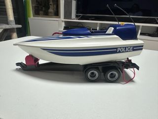 Set de Playmobil de la serie de policía, modelo 4429. - Barca de policía. - Figuras de policías. - Accesorios como maletín, ordenador, dinero y escalera.