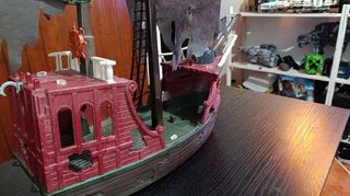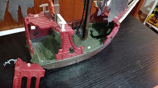Barco pirata con luces y sonido. Funciona con 2 pilas. Muñeco de pirata y momia incluidos. Con movimientos, trampilla, puerta que se mueve... En buen estado, solo tiene algún pequeño roce la figura de la momia. No envío, solo recoger.