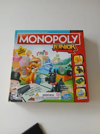 Juego de mesa Monopoly Junior, ideal para los más pequeños. - Versión Mi Primer Monopoly. - Para 2-4 jugadores. - Edad recomendada: 5+ años. - Incluye piezas de juego como coche y barco.