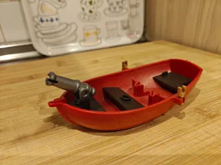 Barca pirata de Playmobil en color rojo. Ideal para completar tu colección. - Incluye cañón. - Piezas interiores de madera. - Enganches para mástil.