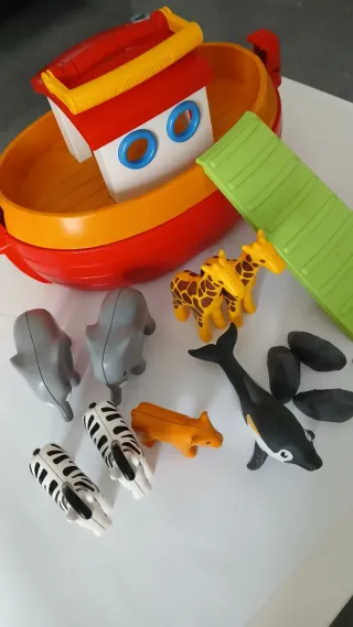 En venta lote de juguetes Playmobil 1,2,3. Incluye: -Arca de Noe (15€) - Barco pirata (12€). - Set zoo aquario con figuras (8€). - Tren Playmobil (12€) -Autobus (10€) Conjunto completo 45€