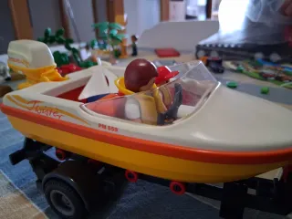 Barco Playmobil con remolque y figuras