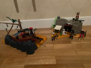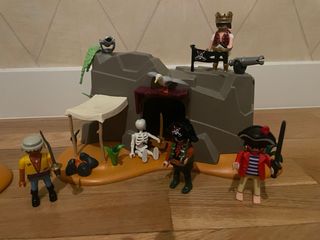 Set de Playmobil de una isla pirata con un barco y varias figuras. - Barco pirata con base. - Isla con cueva y accesorios. - Figuras de piratas y un esqueleto. Se vende todo lo que se ve en las fotos. Hago envíos.