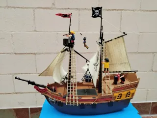 Barco pirata Playmobil en buen estado. Incluye varias figuras y accesorios. - Figuras de piratas Playmobil incluidas. - Accesorios como cañones y otros elementos. Suponemos q faltaran piezas xq se ha jugado con ellos, no se pensó para coleccionistas.