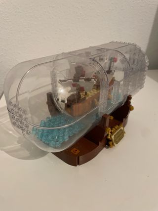 Set Lego Ideas 92177, el icónico barco en botella. - Modelo: Leviathan. - Incluye piezas para construir el barco y la botella. - Base de exhibición con placa decorativa. - Incompleto