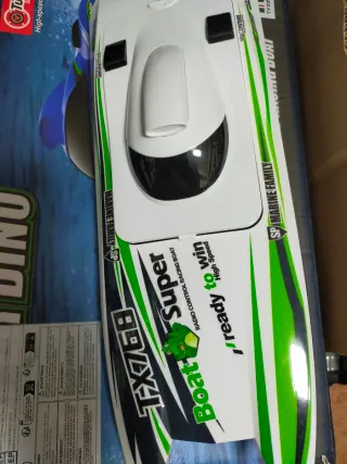Barco teledirigido de alta velocidad FTOOS, en perfecto estado. Solo usada una vez 1 h - Incluye barco y mando a distancia. - Diseño llamativo en verde y blanco. - Sistema de refrigeración por agua. - Velocidad máxima de 30km/h.