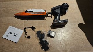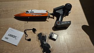 Barco teledirigido con el mando, las instrucciones y caja de fábrica!