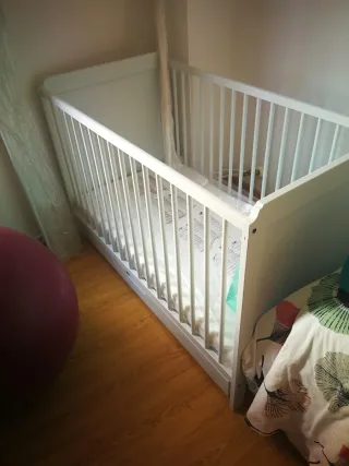Vendemos cuna de madera de Ikea por paso a cama grande. Está en perfecto estado, muy cuidada y en un entorno libre de humos y mascotas. Cuna blanca de estilo clásico, perfecta para la habitación del bebé. Su diseño sencillo y elegante se adapta a cualquier decoración. - Estructura de madera lacada en blanco. - Barreras de seguridad. - regalamos colchón y funda