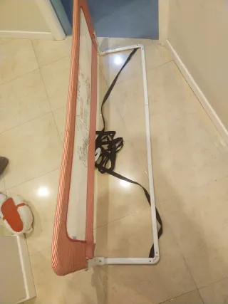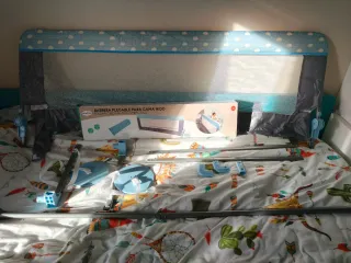 Usanda durante dos semanas, la vendo porque nos regalaron otra de madera haciendo juego con la cama. Es una buena barrera, sirve hasta los 5-años y más. Barrera de cama Asalvo de 150 cm en color blanco. Es abatible y cuenta con correas ajustables. - Apta para cama nido. - Instalación fácil. - Lavado sencillo. - Protección segura y estable.
