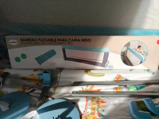 Barrera de seguridad plegable para cama. - Modelo: Barrera plegable para cama nido. - Marca: Olmitos. - Diseñada para camas compactas. - Apta para mayores de 18 meses.