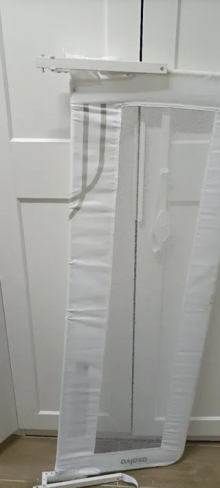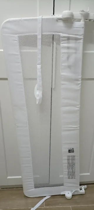 Barrera de seguridad abatible para cama de 140 cm de la marca Jane. Altura 50 cm. Es ideal para evitar caídas durante la noche. Sin usar, se monto pero no se instalo. Incluye bolsa de transporte. Precio amazon 36,95€ - Color gris. - Material de malla transpirable. - Incluye correas de sujeción.