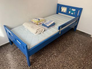 Estructura de cama infantil KRITTER, 70x160cm + Colchón UNDERLIG y cubre colchón de IKEA. - Diseño moderno y seguro de la estructura de cama. (Nuevo: 99€) - Incluye barrera de protección lateral. - Somier de láminas incluido. -Colchón (nuevo valorado en 49€) El precio es por todo y se vende conjuntamente. No dudes escribirme por cualquier consulta!