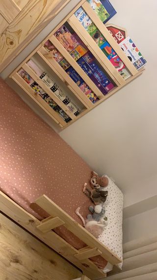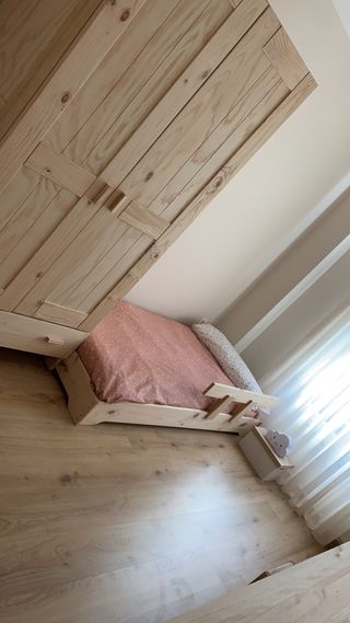 Cama montessori blanca de 140*70cm con barrera rosa y cabecero tapizado (sin usar) La barrera puede servir de cabecero Perfecto estado Se incluye incluye colchon y funda nordica precio negociable