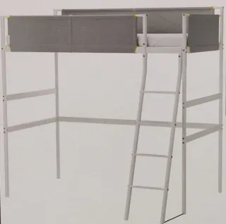Litera de IKEA en color gris, con estructura blanca y escalera. - Barreras de seguridad en color gris. - Escalera de acceso. - Estructura metálica. Las manchas que se aprecian en las primeras fotos ya no están se ha limpiado la tela y ha quedado bien, se puede ver en las ultimas fotos