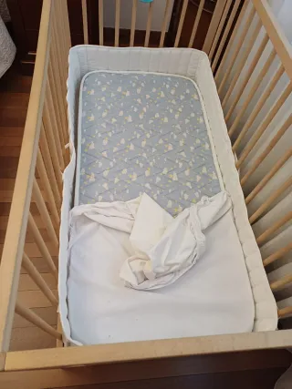 Vendo cuna con colchón y barrera, usado, tiene alguna marca de uso, pero está en buen estado. Le faltan un par de tacos de madera y otros 2 se han quedado “dentro” al desmontarla. Recoger en San Mames