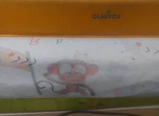 Barrera de seguridad para cama infantil de la marca Olmitos. Diseñada para ofrecer tranquilidad durante el descanso. - Medidas: 150cm de largo x 57cm de alto. - Estructura de malla transpirable. - Diseño con simpáticos monos y estrellas. Tengo dos unidades iguales. 15 euros casa una.