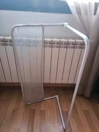 Barrera de seguridad para cama de bebé, ideal para evitar caídas. - Estructura de metal blanco. - Malla textil. - Plegable.