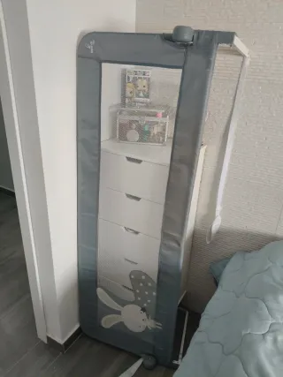 Barrera de seguridad para cama infantil de la marca Asalvo Baby. Diseñada para evitar caídas durante el sueño. - Color gris. - Incluye bolsa de transporte. - Estructura plegable.