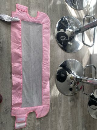 Barrera de seguridad para cama infantil, ideal para evitar caídas durante la noche. Fabricada con materiales resistentes y un diseño práctico. - Color rosa. - Malla transpirable. - Cierre con velcro. Un 1m ancho por altura 37cm Estás desmontada? Con barras de hiero