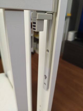 Barrera de seguridad Safety para cama de niño/a. Ayuda a prevenir caídas durante la noche. - Estructura de metal y malla. - Color negro y blanco. - Patas de soporte estables. - Extensible - Apenas se a usado 2 meses
