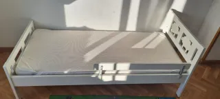 Cuna Gulliver de IKEA en buen estado, se vende con su colchón. - Estructura de madera blanca. - Barreras de seguridad. - Colchón incluido.