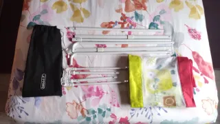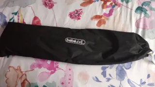 Barrera para el lateral de la cama. Ideal además para llevar de viaje o a una segunda residencia. Muy fácil de montar y recoger. Tiene la bolsa para su transporte y las instrucciones de uso. Está un poco descosida en un extremo pero no afecta al su uso.