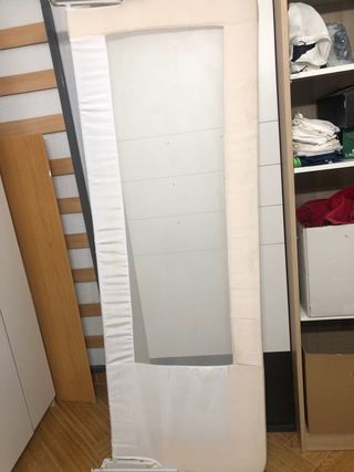 Barrera de seguridad para cama infantil, ideal para evitar caídas durante la noche. Medidas 1,40 de largo. Solo tiene esos dos desperfectos de las 2 últimas fotos. - Estructura metálica blanca. - Malla textil. - Ruedas para fácil movilidad.