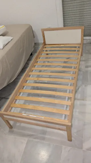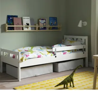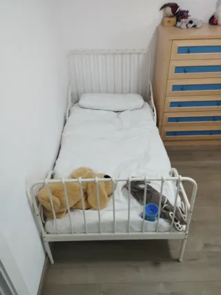 Se vende cama infantil de Ikea, ideal para habitaciones de niños. Incluye colchón nuevo. Tiene solo unos meses de uso, prácticamente nuevas. -incluye barrera de seguridad
