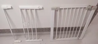 Barreras de seguridad para el hogar. - Estructura de metal blanco. - Diseño de barrotes verticales. -Medidas son: 74cm de mínimo y 94cm de máximo. -Si solo se quiere una barrera son 25€
