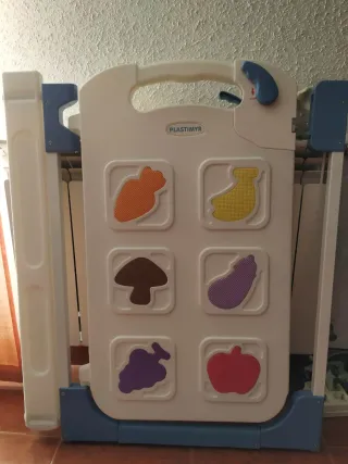 Barrera para parque infantil en buen estado. - Diseño colorido con paneles de diferentes colores. - Incluye una puerta de acceso. - Ideal para crear un espacio seguro para los más pequeños.