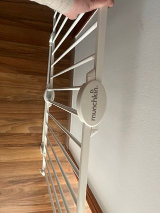 barrera de seguridad Munchkin Sure Nueva. Compré 2 y al final solo uso 1. El embalaje está algo dañado pero la barrera nueva. Ideal para niñ@s o mascotas. - Fácil instalación, sin necesidad de taladrar. - Diseño elegante y moderno. - Material resistente y duradero.
