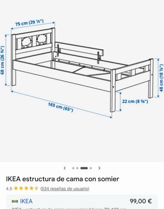 Cama infantil de IKEA, modelo estructura de cama con somier. Ideal para habitaciones de niños. - Medidas: 70x140 cm. - Incluye somier. - Barrera de seguridad. - Diseño blanco.
