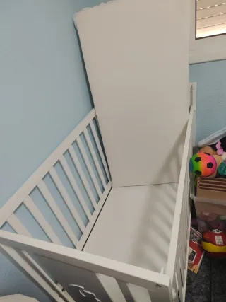 Cuna blanca con colchón y almohada incluidos. Marca Ikea, d Ideal para el descanso del recién nacido. Su diseño sencillo se adapta a cualquier habitación. - Estructura de madera. - Barreras de seguridad.