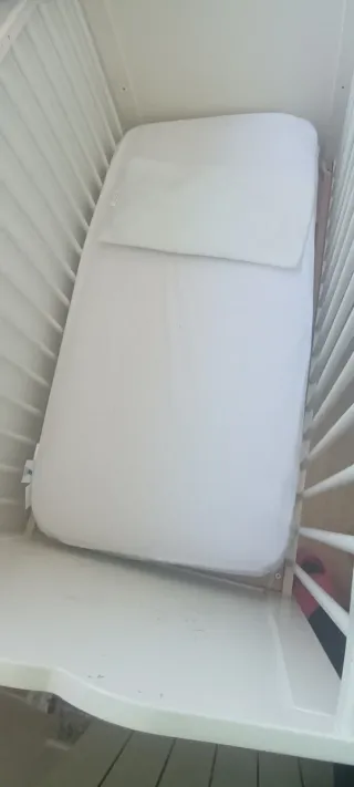 Cuna y colchón blanco