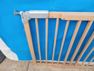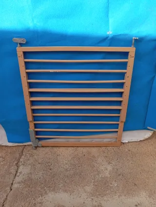 Barrera de seguridad para el hogar, ideal para mantener áreas seguras. - Estructura de madera y metal. - Mecanismo de ajuste. - Diseño de barrotes.
