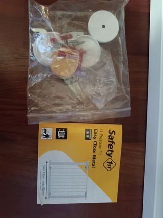 Barrera de seguridad Safety 1st WallFix, ideal para mantener a los más pequeños seguros en casa. Su diseño extensible se adapta a diferentes espacios. - Color blanco. - Sistema de montaje a presión o atornillado a la pared. - Puerta abatible para facilitar el paso. está en la caja sin abrir, nunca la pusimos porque nos mudamos. en amazon vale 60€