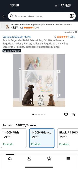 2 barreras por 36€, 1 por 20€ Valla o barrera de seguridad metálica para escaleras o puertas con extensión incluida, por lo que se ajusta a anchos de 84 a 89 cm. Marca hauck Stop N Safe 2 ***Sin Taladrar *** Seguridad Bebé La he usado con mis dos hijos y hasta los 6 años no lan han abierto. - Material: Metal. - Color: Gris.