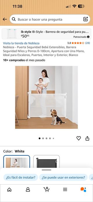 Barrera de seguridad extensible IB-Style, ideal para puertas y escaleras. - Color blanco. - Apertura con una mano. - Apta para interior y exterior. - Adecuada para niños y perros.
