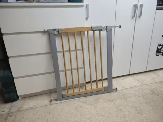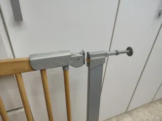 Barrera ajustable. Evita que niños/mascotas accedan a zonas no seguras de la casa como cocina, escaleras etc. Tamaño variable poniendo o quitando módulos y fácil instalación sin taladros. Está en perfecto estado aunque la caja no. Las medidas para el hueco a cubrir están en la segunda foto.