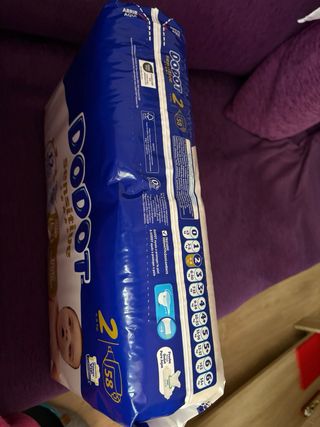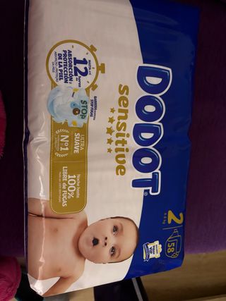 3 Paquetes de pañales Dodot Sensitive, talla 2. - Cada paquete 14 euros, dispongo de tres nuevos por cambio de talla. - Diseñados para bebés de 4 a 8 kg. - Ofrecen hasta 12 horas de absorción y protección de la piel. - Barrera Stop Fugas para evitar escapes. - Ultra suaves al tacto. - Ideales para el uso nocturno, hasta 100% libres de fugas.