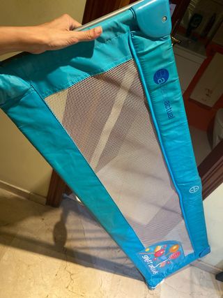 Preciosa barrera de protección para cama infantil, en perfecto estado. - Ideal para evitar caídas de la cama. - Fácil instalación y desmontaje. - Diseño ligero y práctico. - Material transpirable y resistente.