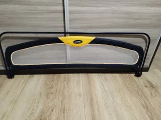 Barrera de seguridad para cama de la marca Jane. Ayuda a prevenir caídas durante el sueño. - Diseño en color azul marino y amarillo. - Malla transpirable en el centro. - Estructura metálica plegable. *No hago envíos