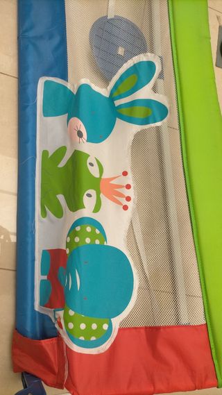 Preciosa barrera de cama nido de la marca Olmitos, con medidas de 150cm. Está en buen estado y lista para usar. - Diseño infantil con ilustraciones de animales. - Ideal para la seguridad del pequeñ@. - Fácil de instalar.