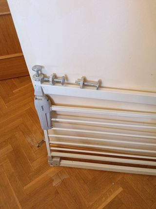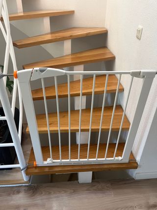 Vendo rebajado conjunto formado por 2 unidades de Barreras de seguridad para escalera y 2 extensiones se 14 cm cada una. Se incluye manual de instrucciones y todos sus herrajes y tornillería. Se instala por presión sin necesidad de taladro. Cuando ya no la necesites, la desinstalas en 3 minutos y todo queda perfecto