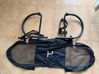 Silla de paseo Bugaboo Bee en color negro y capota amarilla. - Chasis plateado. - Arnés de seguridad de 5 puntos. - Reposapiés. - Ruedas delanteras giratorias. Cambiado de hace dos meses el sistema de freno de la barrera